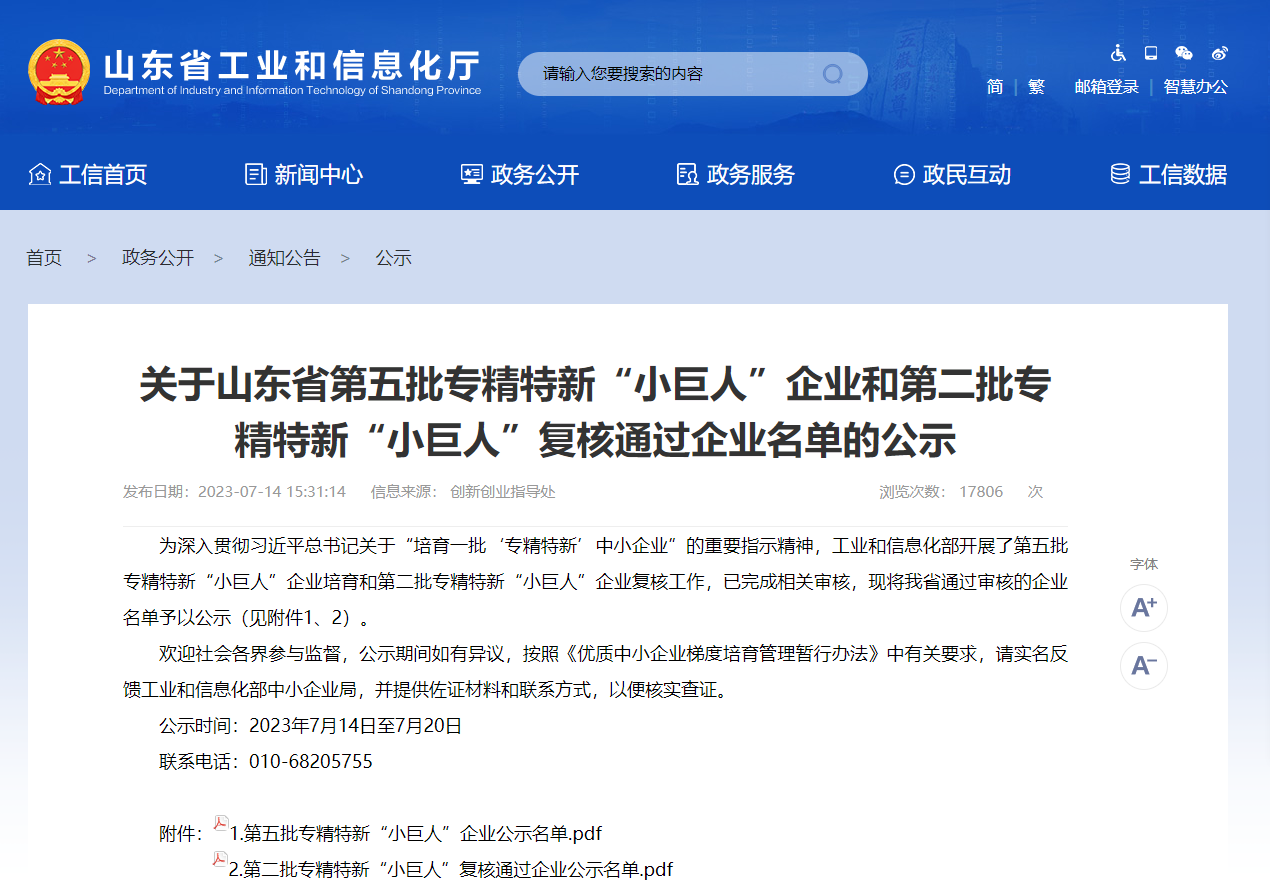 • 喜報!山東捷訊通信技術有限公司榮獲國家專精特新“小巨人”企業。